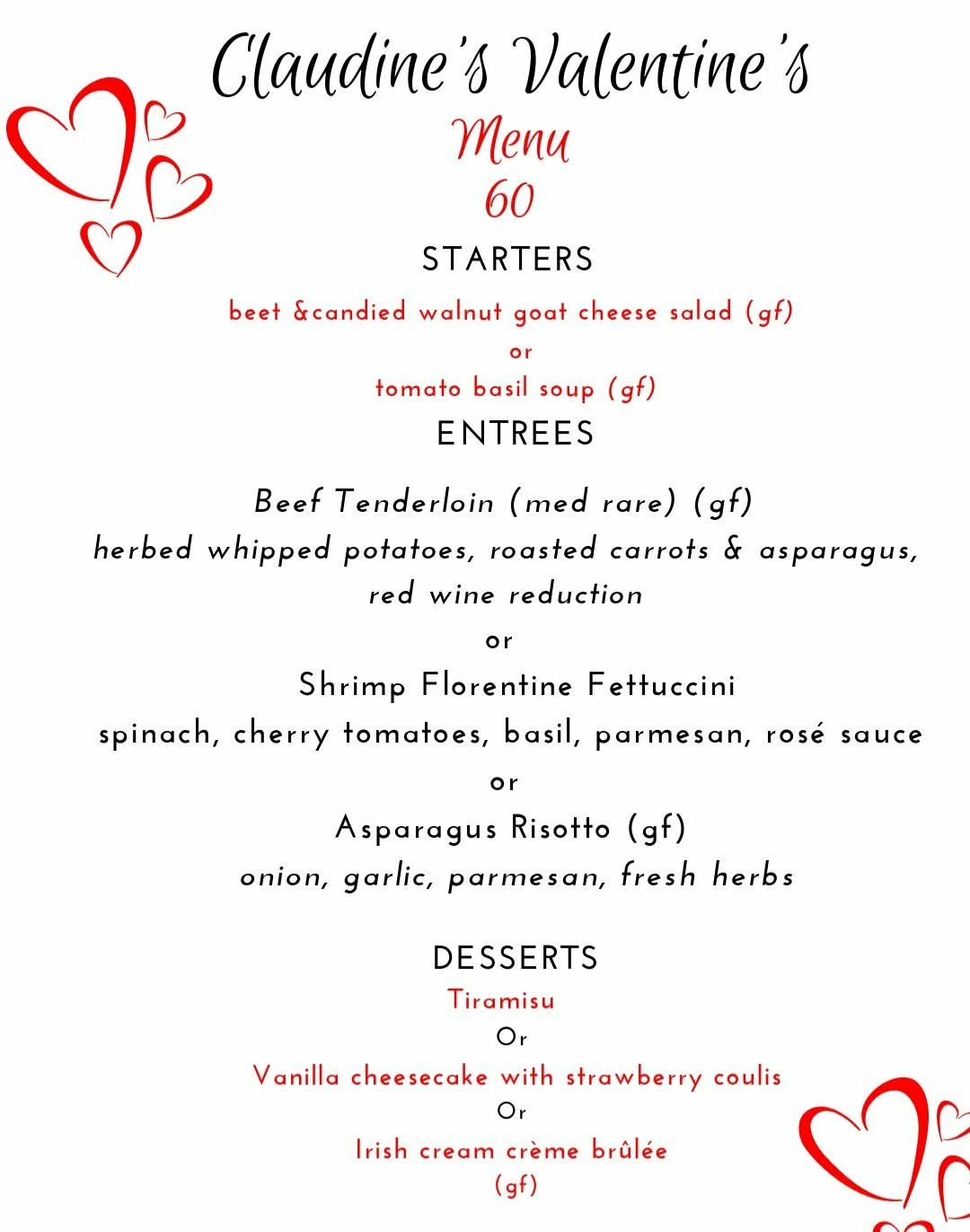 Claudine’s Valentine’s Pre-Fixe Menu — $60