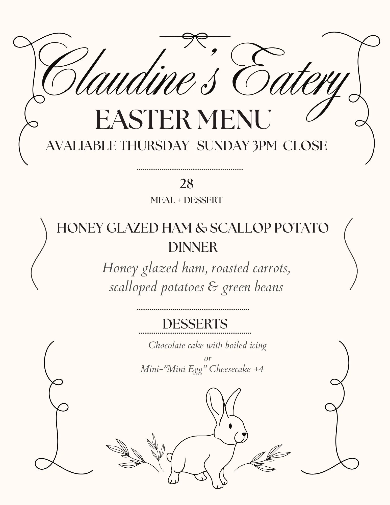 Claudine’s Easter Brunch and Dinner Feature Available Thursday–Sunday Dine in or Takeout